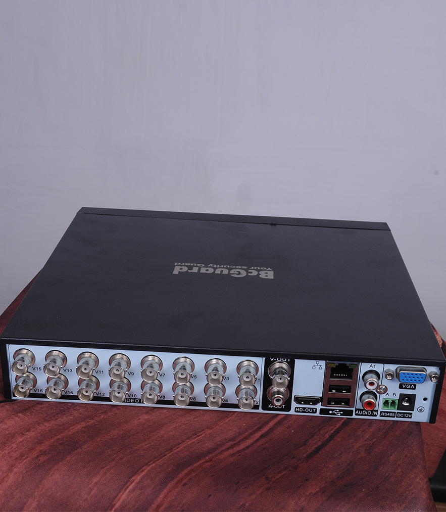 BcGuard 16CH 5MP FULL HD DIGITAL VIDEO RECORDER.5MP and 2MP Camera Support 16channel Indoor DVR . Up to 5MP Resolution for recording with 4 audio input.HDMI output at upto (2560 x 1920 pixels) resolution. Long distance transmission over coaxial cable. Auto Adaptive HDCVI/AHD/TVI/CVBS,All channel 1080P Non-Realtime Recording,Support 1 SATA HDD up to 6TB, 2 USB Ports(2.0),HDMI / VGA Simultaneous Video Output,H.265+/H.265 dual-stream video compression
