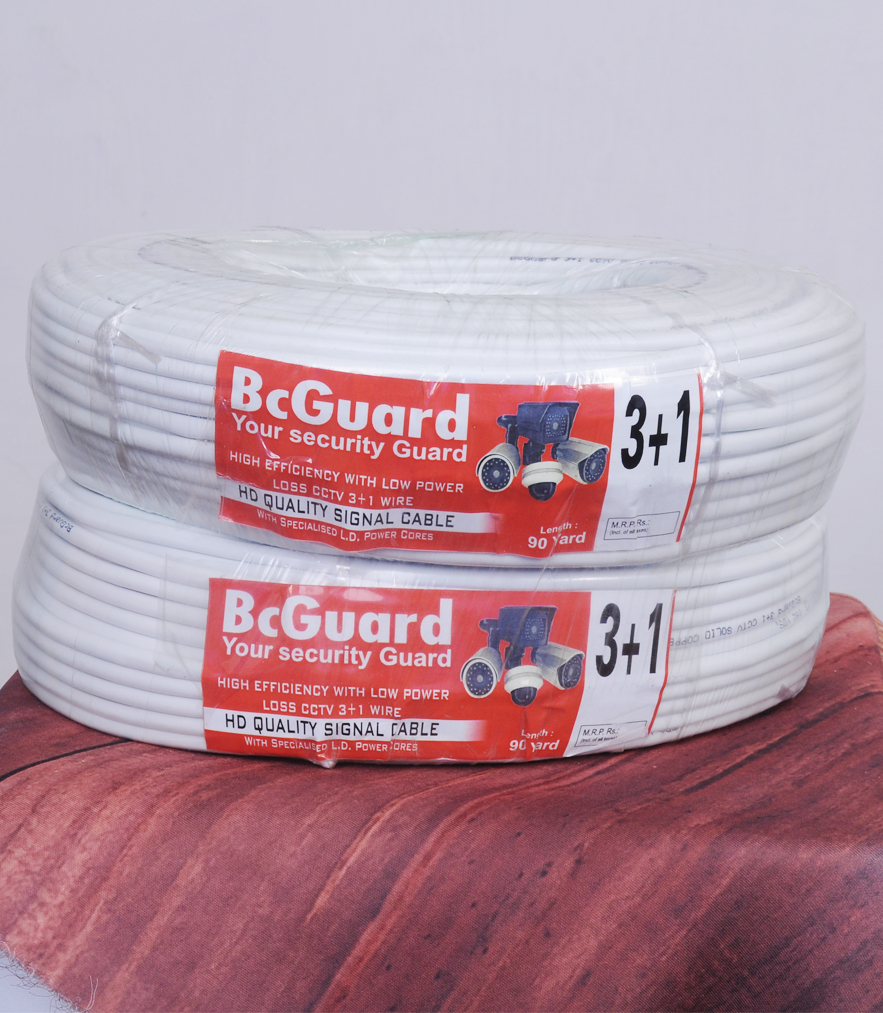 BcGuard Pure Copper 3+1 CCTV Wire Cable with Full Copper and Breading Alloy ,3+1 indoor copper cctv cable, with heavy power, works in long length, Ideal for Surveillance Use, Easy application & Budget Friendly, Excellent coating, Well insulated, Long lasting